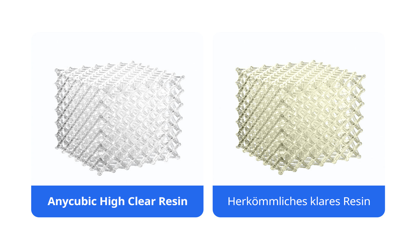 Das Anycubic High Clear Resin basiert auf einer speziellen Formel mit niedrigem Brechungsindex und erreicht eine Lichtdurchlässigkeit von bis zu 92 %. Dadurch entstehen blasenfreie Drucke mit außergewöhnlicher Klarheit.